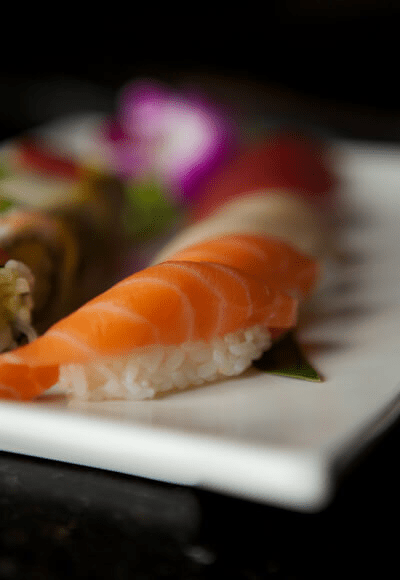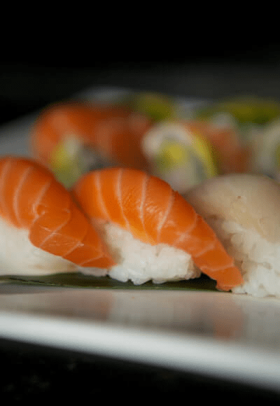 Beim Nigiri-Sushi (握り寿司, Nigiri-Zushi, dt. „Ballen-Sushi“) wird der Reis mit der Hand zu einer kleinen, zwei Finger breiten Rolle gedrückt und mit Fisch, Meeresfrüchten oder Omelett belegt. Manchmal werden Nigiri noch mit einem Streifen Nori zusammengebunden.